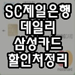 SC제일은행 데일리 삼성카드 할인처 사용처 총정리 직장인들이 주로 사용하는 패턴을 분석해서 꼭 필요한 대중교통/이동통신/커피전문점/편의점 과 같은 가맹점 할인이 주 혜택인 삼성카드인데 이게 바로 SC제일은행과 제휴로 만든 SC제일은행 데일리 삼성카드의 할인처와 사용처에 대해서 자세하게 알아보겠습니다 ㅋ 국내외 가맹점 0.5% 할인-국내외 가맹점 0.5% 결제일할인 (청구할인) 이용조건-가족카드 이용금액은 본인카드와 합산 가능 대중교통 5% 할인-대중교통 5% 결제일할인(청구할인) 대상업종-버스,지하철(후불교통기능 선택시 제공)-시외,고속버스 제외 이용조건-할인한도 통합 월 3000원-전월 일시불 및 할부 이용요금 30만원 이상시 제공 이동통신요금 5% 할인-SKT/KT/LGU+ 이동통신요금 자동납부 연결..