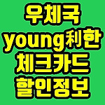 우체국 영리한 체크카드 young利 할인한도 가맹점 상세 정보 체크카드의 장점은 일일히 나열하기 정도로 많은데요 그중에서도 나이대 사용패턴에 맞는 카드를 사용하는게 가장 활용범위가 넓어집니다 우체국에서 어린세대들이 영리하게 사용할수 있게끔 만든 영리한체크카드 할인정보와 가맹점 등에 대해서 알아보도록 하겠습니다 일반서비스(통합할인) ※ 전월 이용실적 20만원 이상 죠스떡볶이 · 롯데리아 · 맥도날드 · 버거킹 10% 캐시백월 3회, 월 최대 5,000원, 1회 이용금액 최대 2만원 한도※ 오프라인에 한함(기프트콘, 모바일, 온라인결제 제외), 대형마트 · 백화점· 쇼핑몰 입점매장 할인불가 더페이스샵 · 미샤 · 이니스프리 5% 캐시백월 2회, 월 최대 5,000원※ 오프라인에 한함(기프트콘, 모바일, 온라..