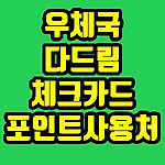 우체국 다드림 체크카드 우체국포인트 적립 예금 보험 우편 등 포인트 사용처 사용법 정리 가맹점에서 사용한 금액만큼 우체국 포인트를 적립받아 Oh Point 가맹점에서 사용할수 있는 체크카드가 있어서 이야기를 해볼고 합니다 바로 우체국 다드림체크카드인데요 어떤 가맹점에서 적립이되는지 또 사용은 어떻게 하는지 알아보겠습니다 우체국서비스우체국이용금액의 5% 적립대상가맹점 : 우체국창구, 인터넷우체국, 우체국쇼핑전월실적 조건 없으며 월 최대 5,000P 통신서비스통신 이용금액의 10% 적립대상가맹점- 알뜰폰 통신사(아이즈비전, 유니컴즈, 큰사람, 이지모바일, 위너스텔, 인스코비, 머천드코리아, 서경방송, 제주방송, 와이엘랜드 )통신사에서 카드 자동결제 신청 시(우체국 알뜰폰요금제 이용자에 한함)전월실적 10만원..