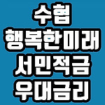 수협 sh행복한미래적금 서민 목돈마련 가입기간 대상 우대금리 이율 수협은행 sh행복한미래적금은 서민의 목돈마련을 돕기위한 3년제 적립식예금 으로 최대 4.5%금리까지 제공되는 적금에 대해서 가입대상과 우대금리 등 자세히 알아보도록 하겠습니다 예금종류적립식예금 (정액적립식) 가입대상기초생활수급자, 소년소녀가장, 북한이탈주민, 결혼이민자, 근로장려금수급자, 한부모가족지원보호대상자, 차상위계층이하 만65세이상 고령자* 신규시점에 해당증빙서류 제출 후 가입 가능 * 증빙서류예시 * 결혼이민자란 결혼이전에 대한민국국적이 아닌 외국국적을 가진자가 대한민국국적을 가진자와 결혼한 사람을 의미합니다. (결혼 이후 대한민국국적을 취득한 사람도 포함하며 법적결혼관계를 유지해야 합니다.) 가입제한1인 1계좌만 가입 가능 가입..
