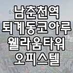 남춘천역 퇴계동 코아루 웰라움 타워 오피스텔에 대해서! 최근 평창올림픽 때문에 강원도가 핫해졌는데요 강원도로 가는 길목에 있는 춘천도 역시나 광심이 뜨거워지고 있습니다 ㅋ 게다가 역세권이라면 더하죠 ㅋㅋ 남춘천역 역세권에서 완벽한 인프라를 누리는 주거가치 높은 퇴계동의 중심생활권에 남춘천역 퇴계동 코아루 웰라움 타워 오피스텔이 들어오게 되어서 한번 알아보려고 합니다 ㅋ 위치는 강원도 춘천시 퇴계동 369-9 이루언이고 규모는 지하6층 지상 23층으로 업무시설(오피스텔)과 근린생활시설이 있습니다 오피스텔 총 세대수는 630세대나 되네요 위의 지도를 보면 아시겠지만 경춘선복합전철의 남춘천역 인근에 위치하고 있어 다양한 프리미엄 들이 있는데요 남춘천역 코아루 웰라움 타워 오피스텔의 위치,지역 프리미엄에 대해서..