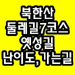 북한산 둘레길 7코스 옛성길 가는방법,소요시간,난이도 알아보기 북한산 둘레길 1코스 소나무숲길 가는법,소요시간,코스안내북한산 둘레길 2코스 순례길 가는길,난이도,소요시간 확인북한산 둘레길 3코스 흰구름길 가는법,소요시간,난이도 등북한산 둘레길 4코스 솔샘길 가는길,소요시간,난이도,코스안내북한산 둘레길 5코스 명상길 가는법,소요시간,난이도,코스정리북한산 둘레길 6코스 평창마을길 가는길,소요시간,난이도,코스 등(▲위 제목 링크 클릭하면 해당 글로 이동합니다) 둘레길이라는 말의 의미가 뭔지 아세요?? 둘레길은 산을 밖으로 둘러싸는 둘레를 도는 길, 또는 도시의 둘레를 도는 길이라고 할수 있는데요 국립공원으로 지정된 산의 둘레길은 산의 정상을 정복하기 위한 등산,탐방 문화를 변화시키고 신체적 약자 또한 국립공원..
